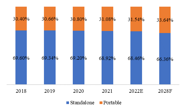 图:收入方面的区域市场份额(2022年和2028年)